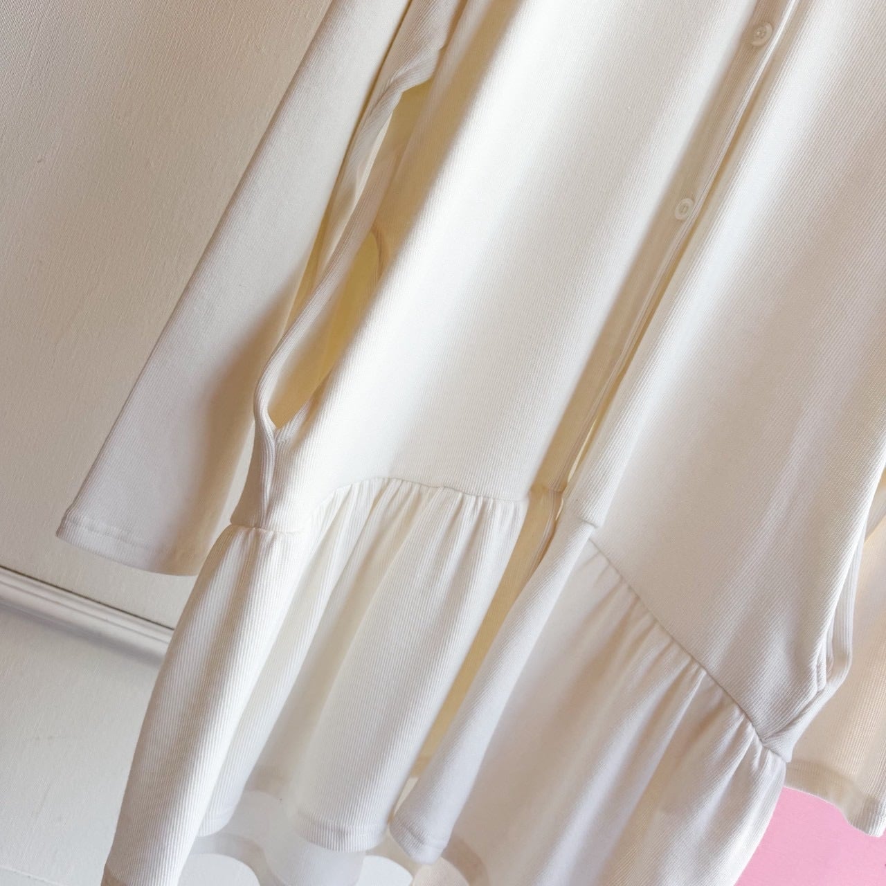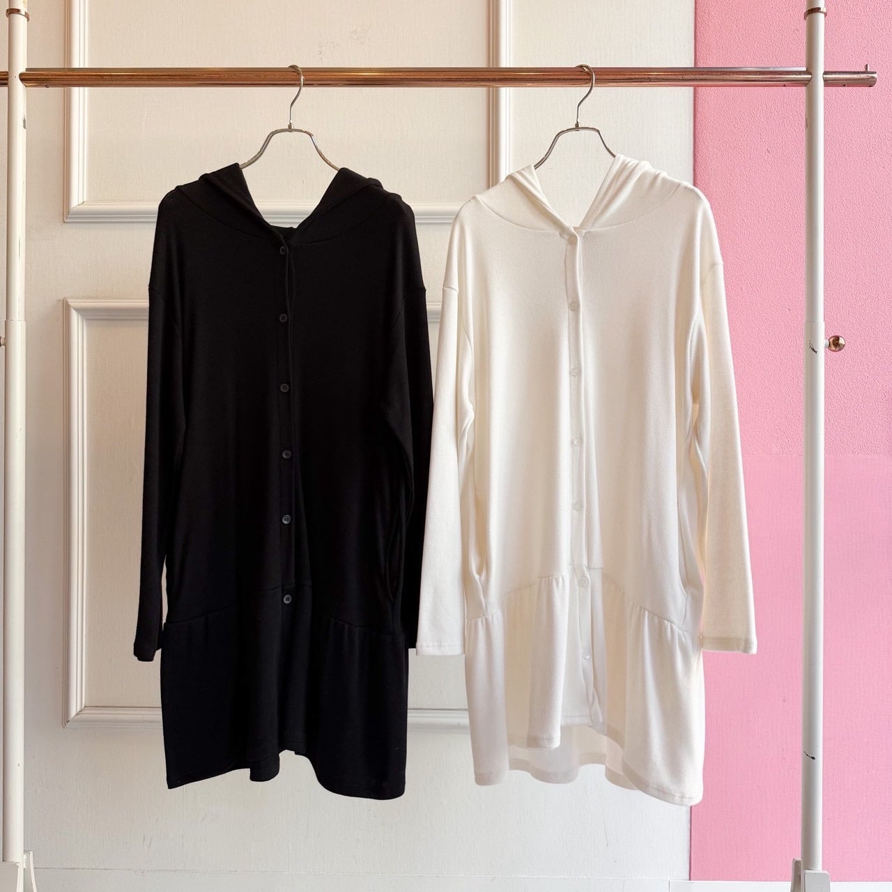 フリルフードボタンチュニックカーディガン