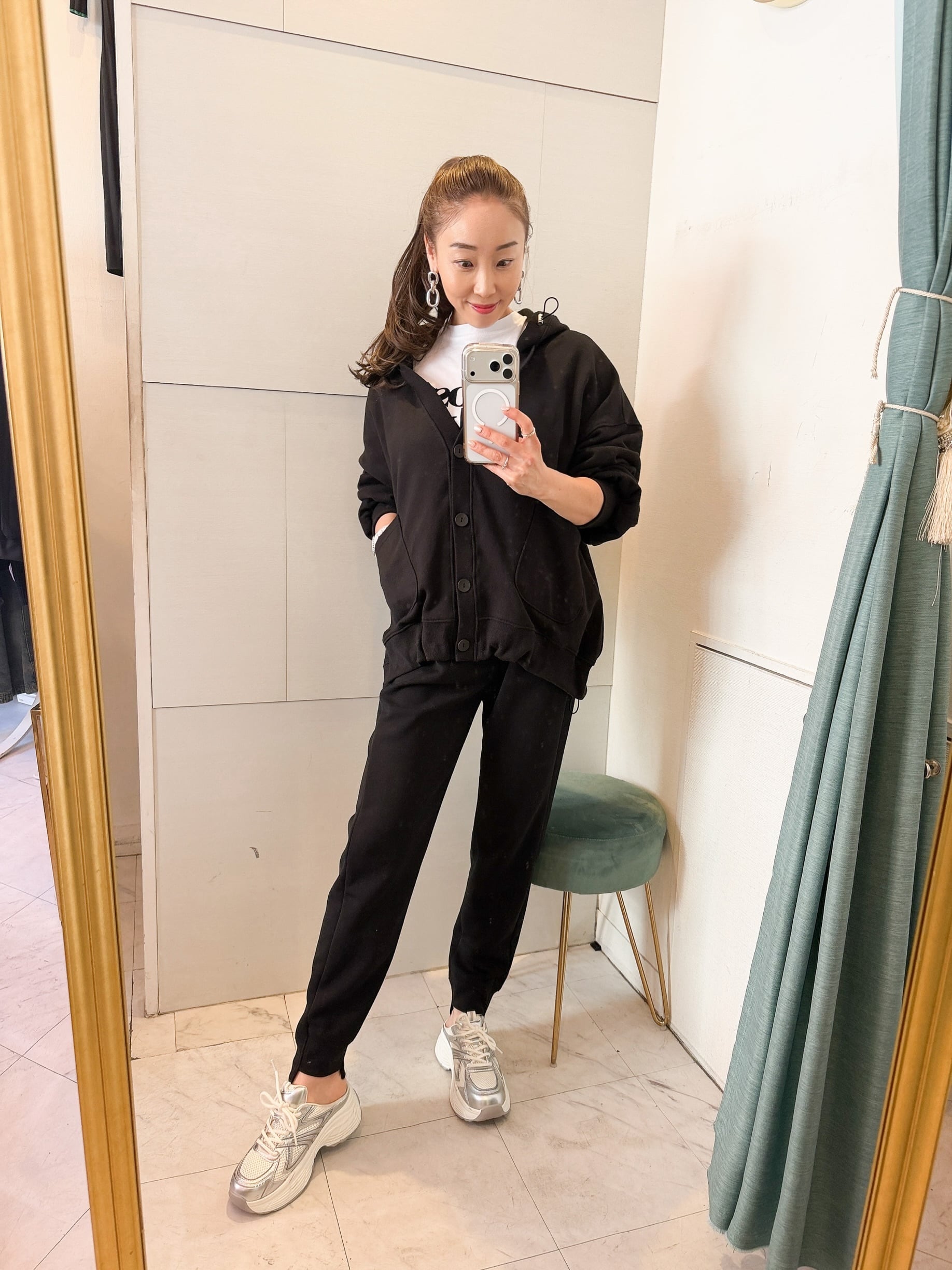 フードボタンスウェットカーディガン