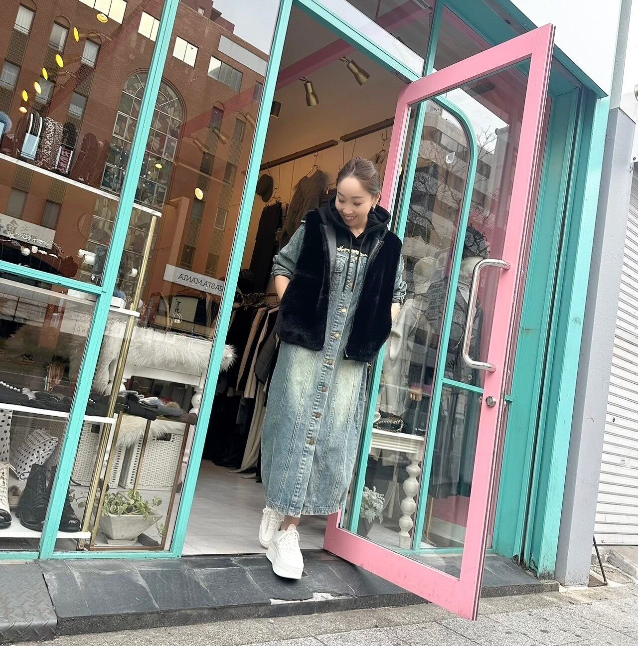 スウェット切替デニムOP
