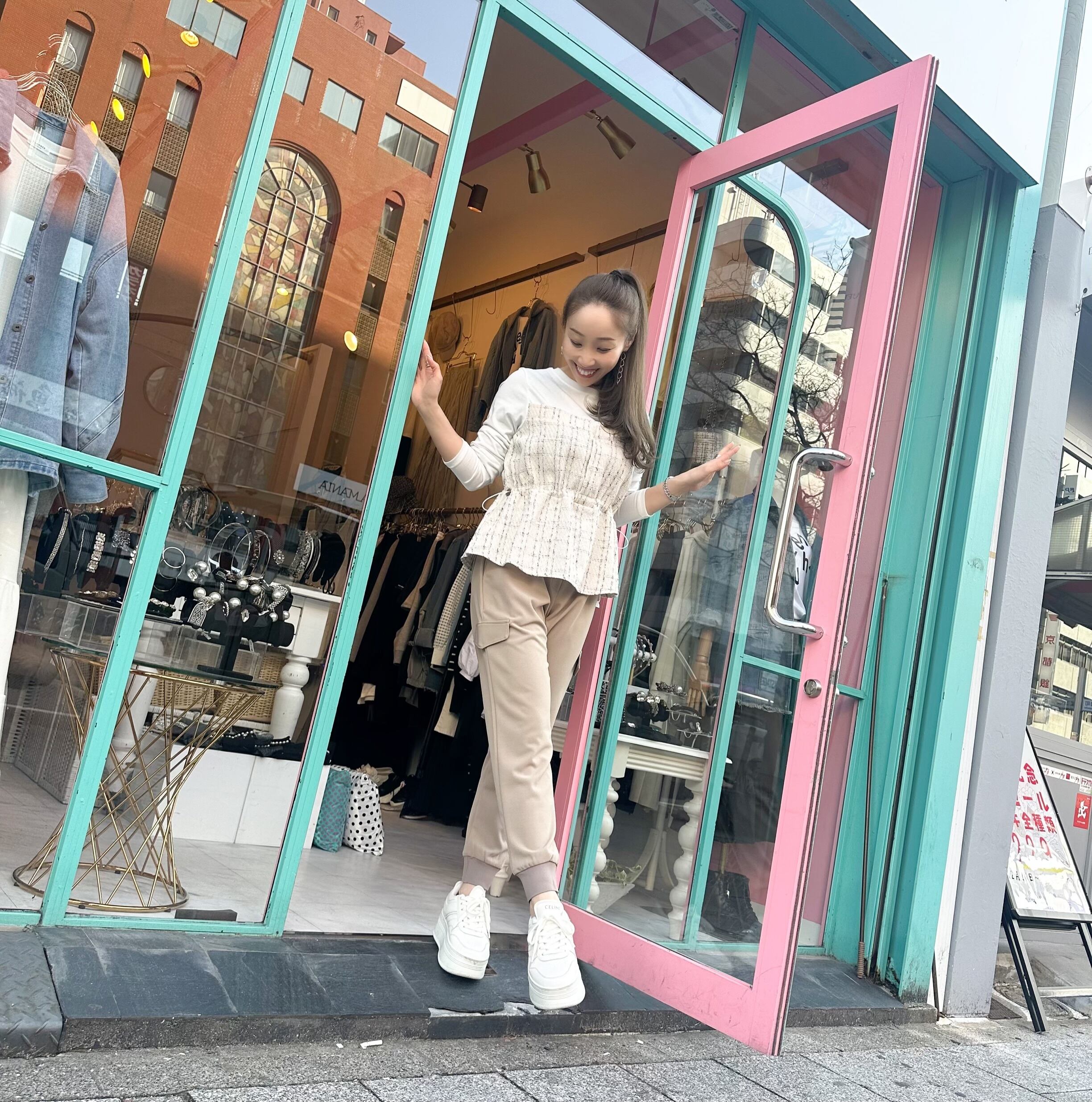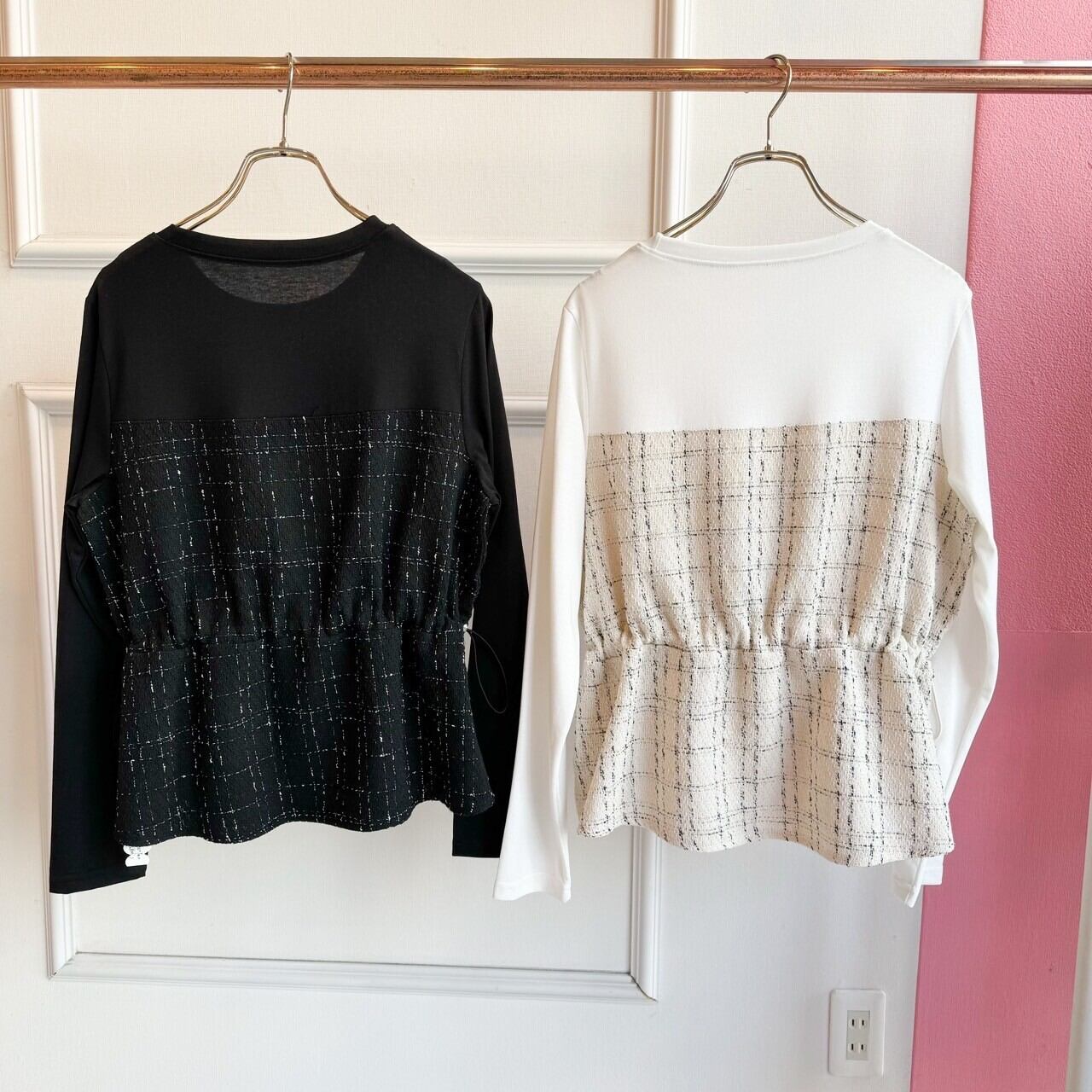 ツイード絞りドッキングロンT